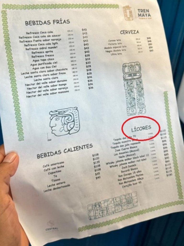 La revisión a la variedad de alimentos y bebidas del Tren Maya fue tan minuciosa que los usuarios incluso identificaron faltas de ortografía en el menú. Por ejemplo, en el apartado de bebidas, se puede leer «Café Americano» en lugar de «Café Americano».Por otra parte, internautas criticaron hasta el diseño del menú, elaborado con tipografía «Comic Sans».