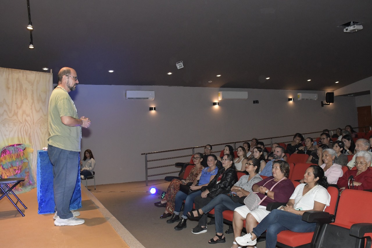 Durante más de una hora, el público que se dio cita en el auditorio del centro museográfico disfrutó de la obra “El Vagabundo del Blanquita”, escrita por Humberto Dupeyron y adaptada a monólogo por Toño Reyes, quien cautivó a las y los asistentes con su interpretación de un hombre mayor que vive en la calle, afuera del Teatro Blanquita, que en su juventud fue un actor que se presentó en el teatro, pero su carrera se vio truncada.