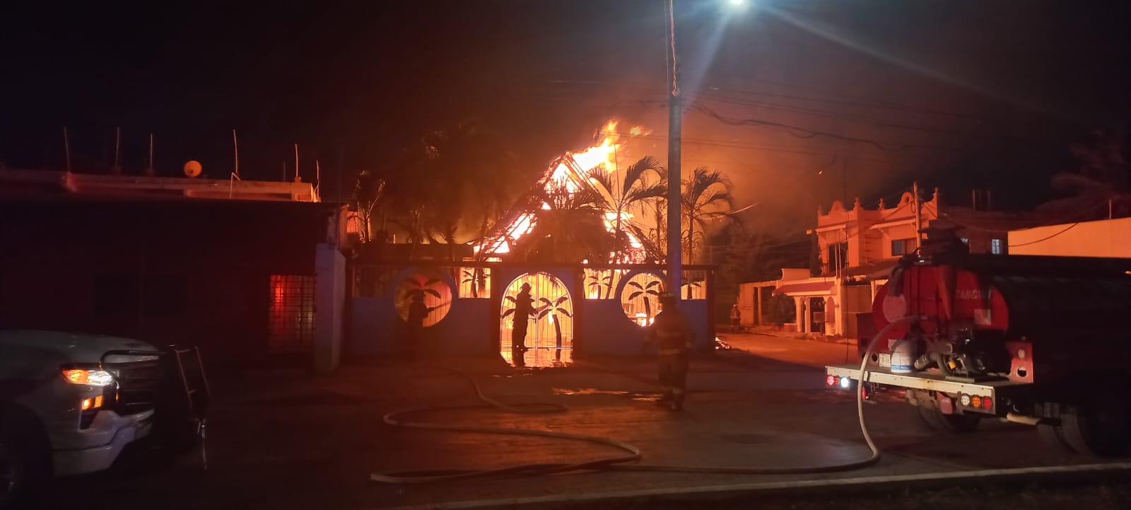 El siniestro ocurrió poco después de la una de la madrugada en la Región 235, según datos preliminares. Elementos del Cuerpo de Bomberos acudieron rápidamente al lugar y lograron controlar el incendio en aproximadamente media hora. El fuego devastó una palapa construida con madera y guano, así como mesas, sillas, equipo de luz y sonido, lámparas, y materiales de guano que iban a ser instalados como parte de la remodelación.