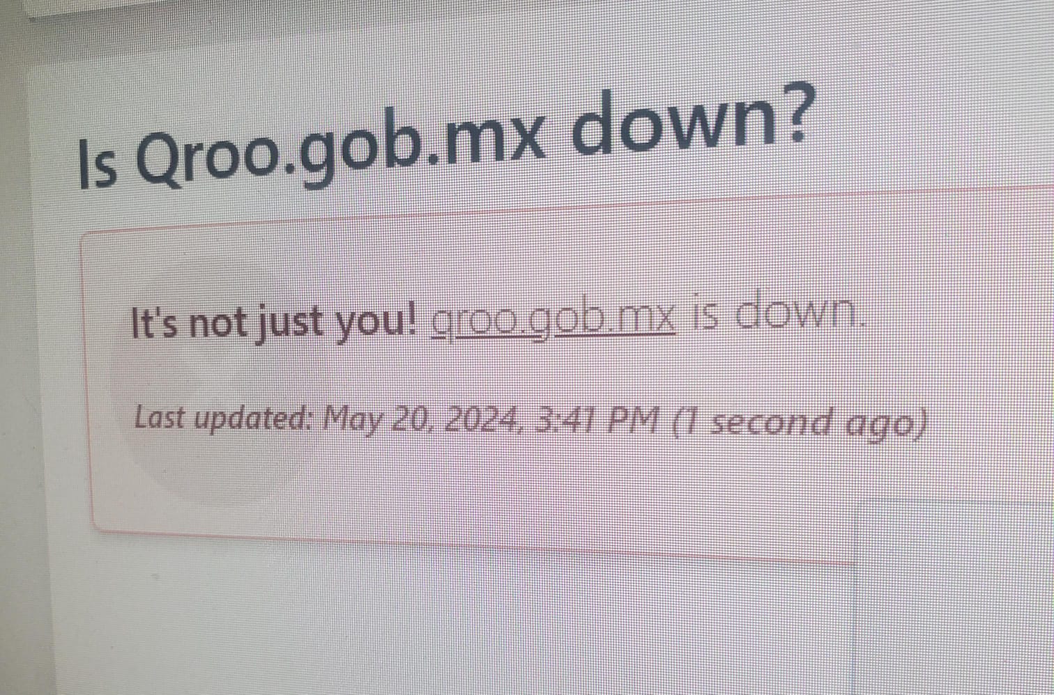 Según «Down for Everyone or Just Me», una herramienta que verifica el estado de los servidores web, el sitio gubernamental está inactivo. No ha habido comunicados oficiales al respecto en la página de Facebook del Gobierno del Estado.