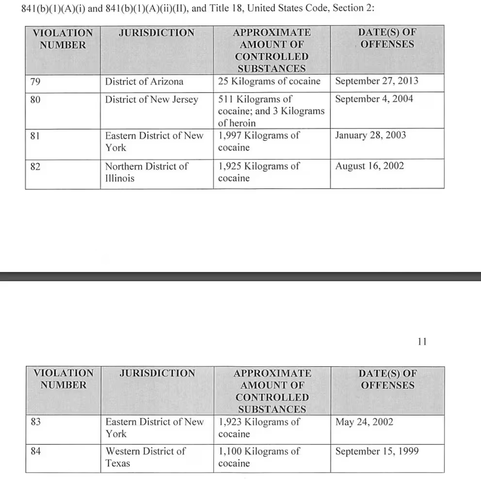 En caso de ser encontrado culpable por conspiración internacional para la fabricación y distribución de cocaína, heroína, metanfetamina, marihuana y fentanilo, así como por lavado de dinero, el gobierno estadounidense podrá confiscar sus bienes. El documento de 27 páginas detalla que se busca confiscar cualquier propiedad derivada de los delitos y que brinde control sobre la empresa criminal, incluyendo bienes con un valor estimado en 14 mil millones de dólares.