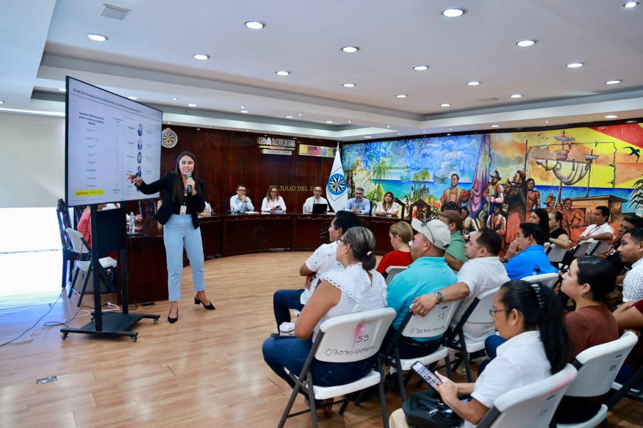 En la conferencia, que se llevó a cabo en la Sala de Cabildos, participaron empresarios, personal de Tesorería y Contraloría, entre otras áreas del Ayuntamiento.