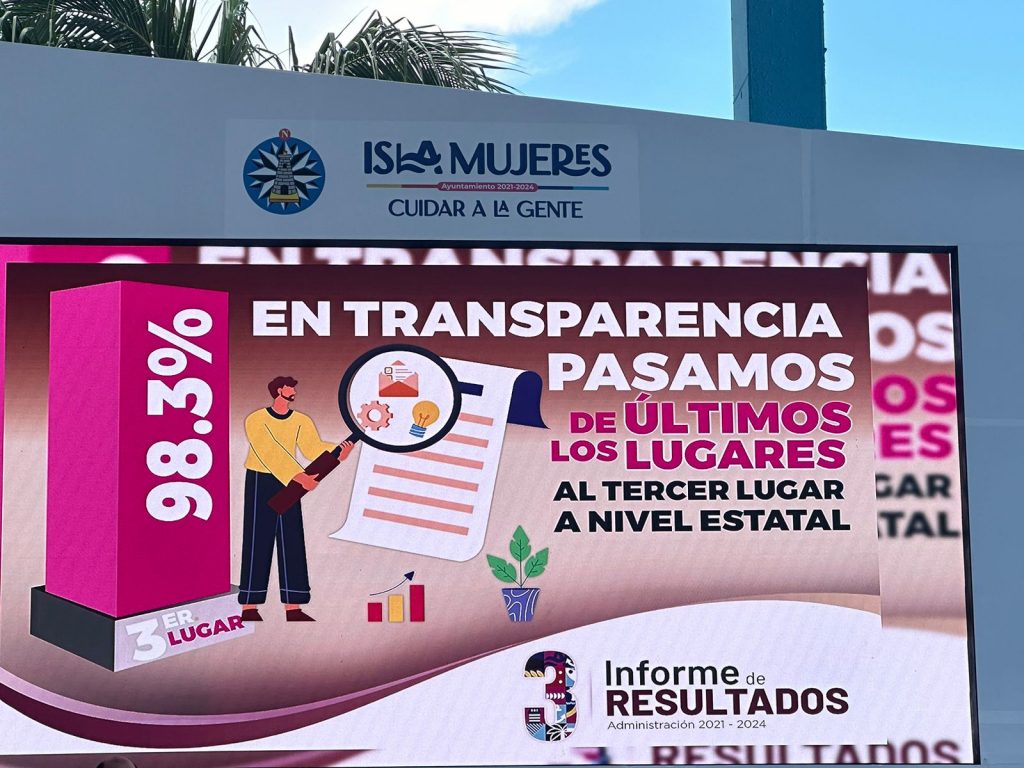 En total, se han invertido 585 millones de pesos en obras públicas, mejorando la calidad de vida de los isleños y fortaleciendo la infraestructura del municipio. Además, Gómez Ricalde destacó un logro clave en el área de transparencia, donde Isla Mujeres pasó de ocupar los últimos lugares a posicionarse en el tercer lugar a nivel estatal.