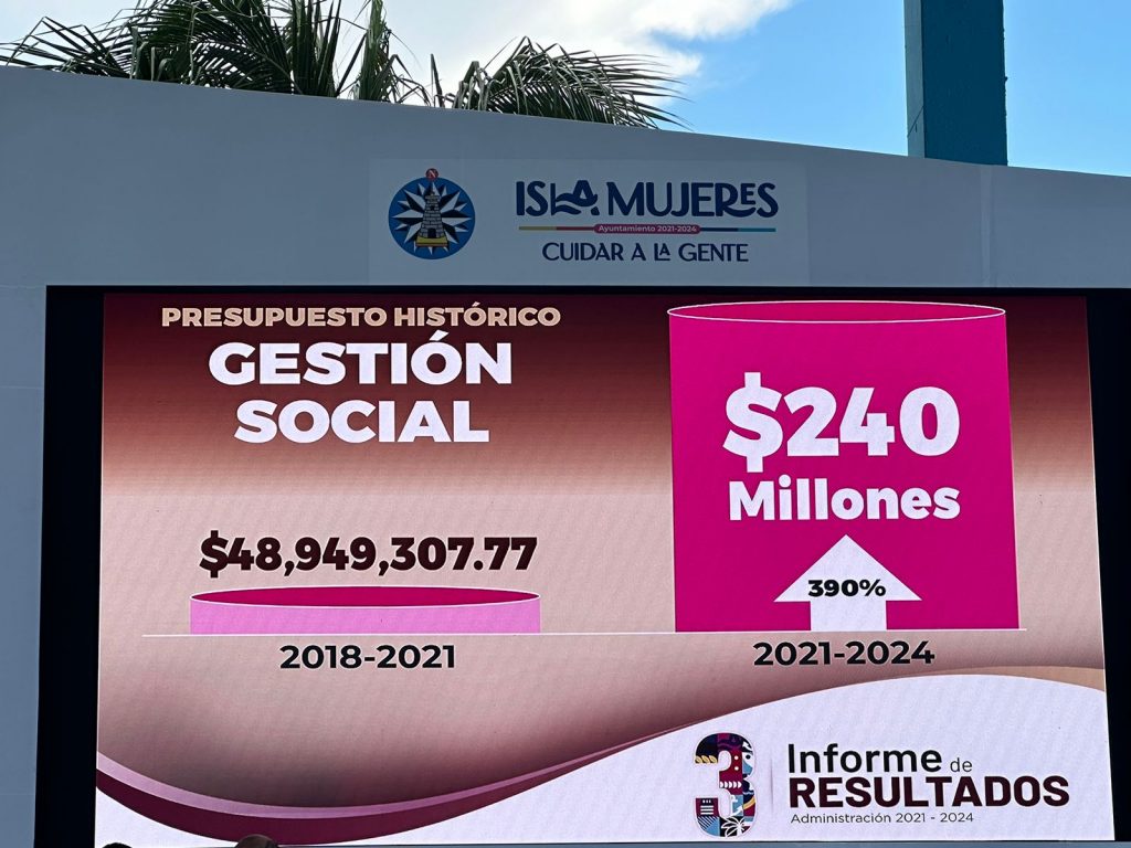 Durante su mandato, se ha ejercido un presupuesto histórico de 240 millones de pesos en apoyos, gestiones y acciones que reflejan un gobierno cercano a su gente, comprometido con el desarrollo y bienestar de Isla Mujeres.