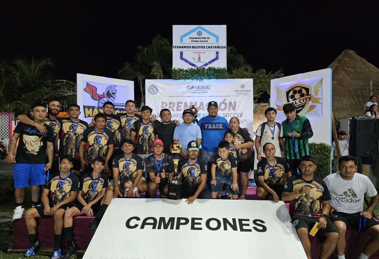 ISLA MUJERES.- El gobierno municipal que encabeza la Presidenta Municipal, Atenea Gómez Ricalde, busca fomentar la sana convivencia entre la sociedad isleña a través del deporte, por ello anoche se celebró la final de la Liga Municipal de Fútbol Soccer “Fernando Bustos Castañeda”, en el campo de la colonia Salina Chica, donde Real City se coronó campeón.