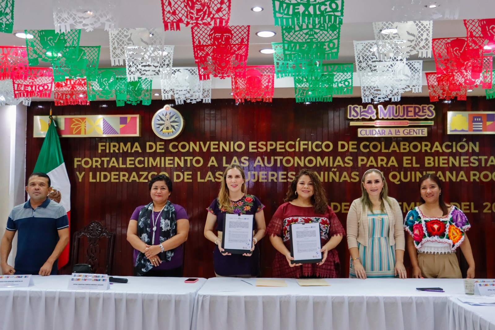 ISLA MUJERES.- El Instituto Quintanarroense de la Mujer (IQM) y el Ayuntamiento de Isla Mujeres firmaron un convenio de colaboración para poner en marcha el proyecto Centros para el Desarrollo de las Mujeres (CDM), compromiso que busca contribuir al progreso integral de las mujeres en el municipio, garantizando su derecho a una vida libre de violencia.