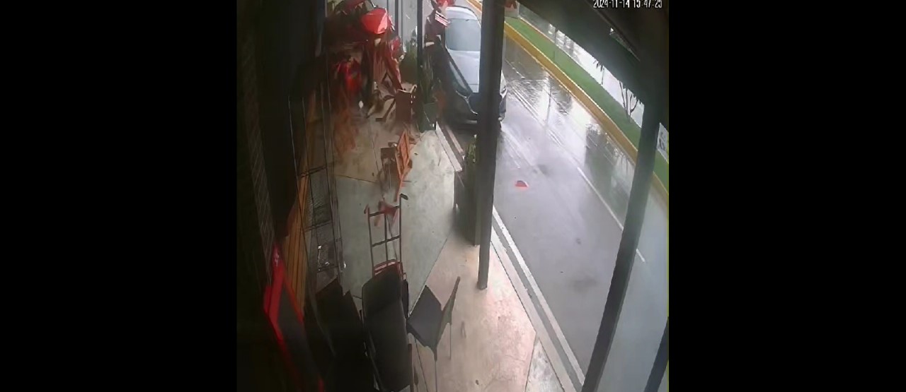 El incidente, que tuvo lugar alrededor de las 15:47 horas, fue captado por las cámaras de seguridad del local. En el video de un minuto de duración, se observa cómo el conductor del auto, al parecer descontrolado por las condiciones resbaladizas del pavimento, se desvía de su trayectoria y arrolla a las personas que disfrutaban de su comida en la terraza del restaurante.