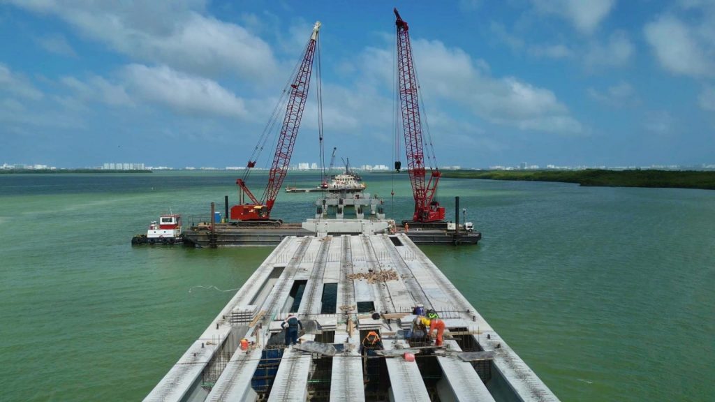 Cancún.- El proyecto del Puente Nichupté, una de las obras de infraestructura más relevantes en la región, avanza a buen ritmo, alcanzando ya un 71% de avance.