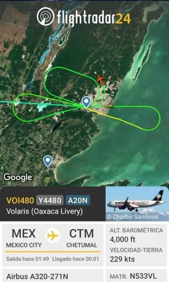 El avión, identificado con la matrícula N5333VL, tenía programado aterrizar en Chetumal a las 08:10 horas. Sin embargo, tras varios intentos fallidos del piloto por descender, se tomó la decisión de redirigirlo a Cancún, donde aterrizó sin contratiempos a las 09:25 horas.