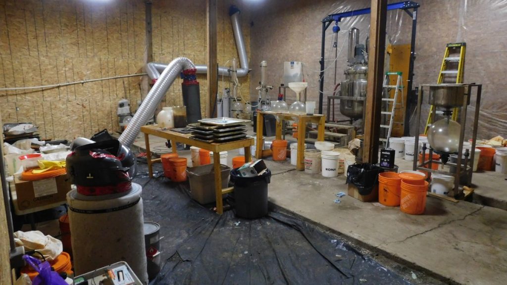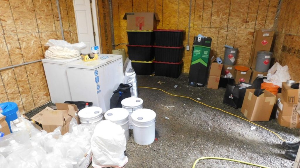 El laboratorio clandestino, ubicado en un edificio anexo, estaba equipado para producir sustancias químicas suficientes para generar 96 millones de dosis de fentanilo y grandes cantidades de metanfetaminas. La operación, liderada por la sección federal de crímenes organizados de la RCMP, vinculó la instalación a redes criminales transnacionales y a la pandilla Wolfpack, una alianza local de alto perfil. Entre las pruebas recuperadas se hallaron conexiones con Donald Lyons, un narcotraficante de los Independent Soldiers asesinado en Princeton, quien tenía vínculos cercanos con líderes de la pandilla y presuntamente participaba en las actividades del laboratorio.