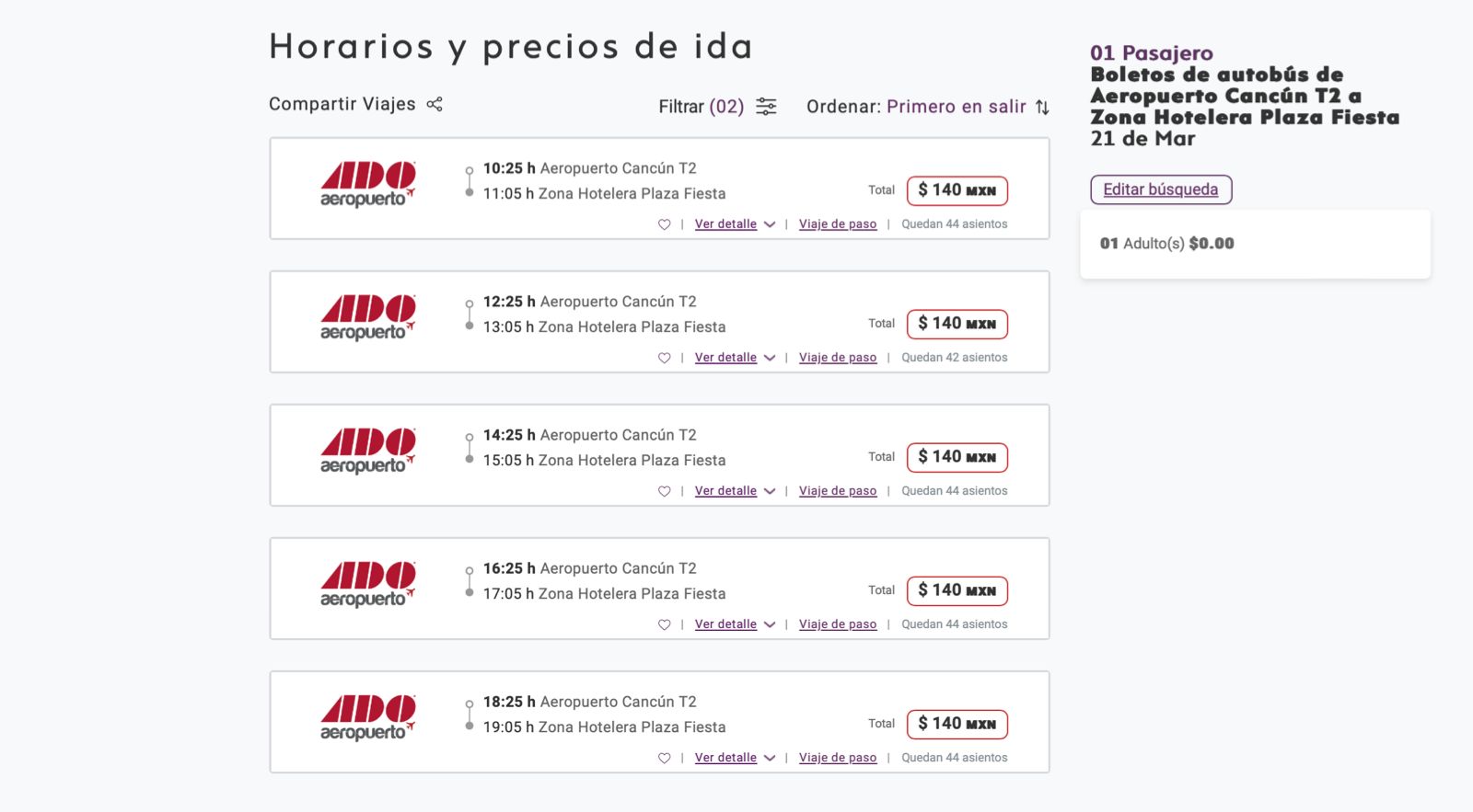 El servicio contará con salidas cada dos horas, de 10:05 a 18:05 horas, partiendo desde la Terminal 2 y haciendo paradas en las terminales 3 y 4 antes de llegar a Plaza La Fiesta, en la Zona Hotelera.