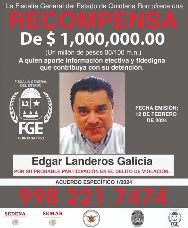 Cancún.- Familiares de la menor de edad que presuntamente fue violada por el psiquiatra Édgar Landeros Galicia solicitaron este viernes a la Fiscalía General del Estado incrementar el monto de la recompensa ofrecida por información que conduzca a su captura. Durante una rueda de prensa, Claudia, una familiar de la víctima, leyó un pronunciamiento dirigido a las autoridades, incluyendo a la gobernadora Mara Lezama y a la presidenta Claudia Sheinbaum, en el que destacaron la urgencia de que la ciudadanía colabore en la búsqueda de este individuo, considerado un peligro para la sociedad.