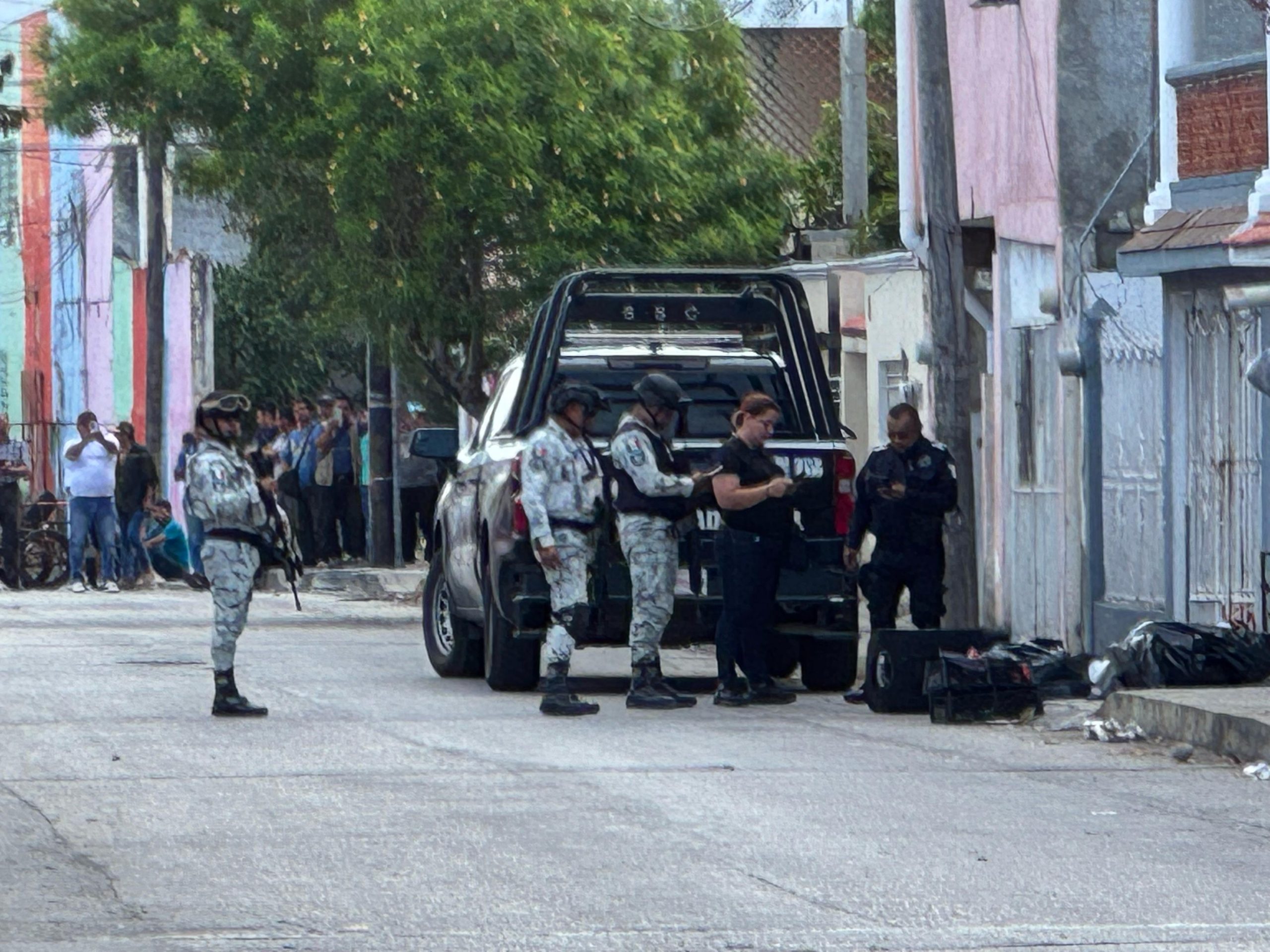 Minutos después, elementos de la Guardia Nacional y del Ejército Mexicano se sumaron a la escena para reforzar el cerco de seguridad, mientras agentes de la Policía Ministerial iniciaban las primeras diligencias.