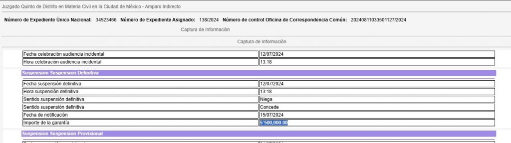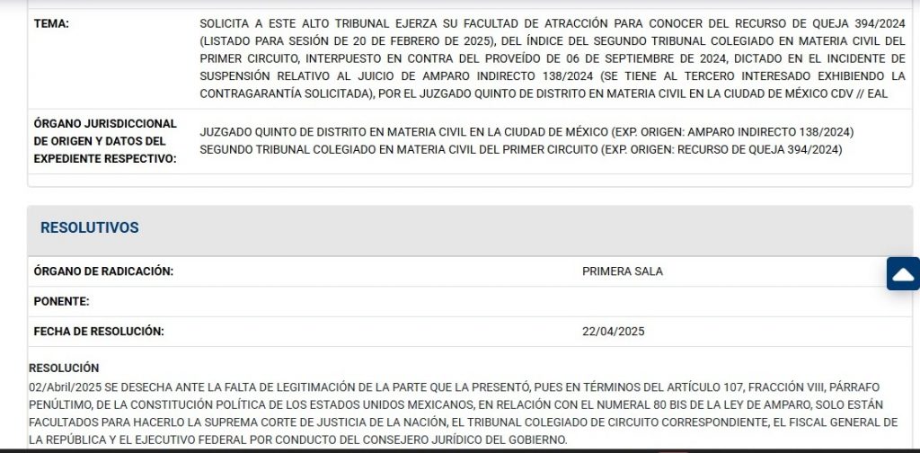 El Tribunal Colegiado de Circuito ha asumido la revisión del caso de apelación, luego de que la Suprema Corte de Justicia de la Nación se negara a atraer el asunto, una señal de que este conflicto, lejos de resolverse en lo inmediato, se irá prolongando mientras las suspensiones judiciales estén vigentes.