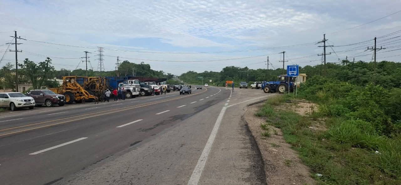Chetumal, Quintana Roo, 24 de junio de 2025.– Tal como lo advirtieron, productores cañeros de Quintana Roo instalaron maquinaria pesada a la altura del kilómetro 19 de la carretera Chetumal–Cancún este martes, con la intención de bloquear la vía si no reciben una respuesta inmediata del gobierno estatal ante su demanda de un apoyo económico emergente.