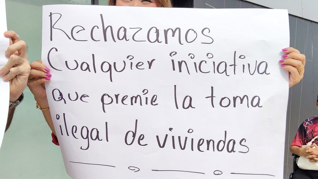 Entre las consignas, destacaron mensajes como “No a la regularización de ocupaciones ilegales de viviendas” y “Rechazamos que se premie la invasión”. De acuerdo con los manifestantes, permitir o promover estas prácticas vulnera directamente los derechos de quienes adquirieron sus viviendas de forma legal y representa un incentivo para nuevos actos de invasión.