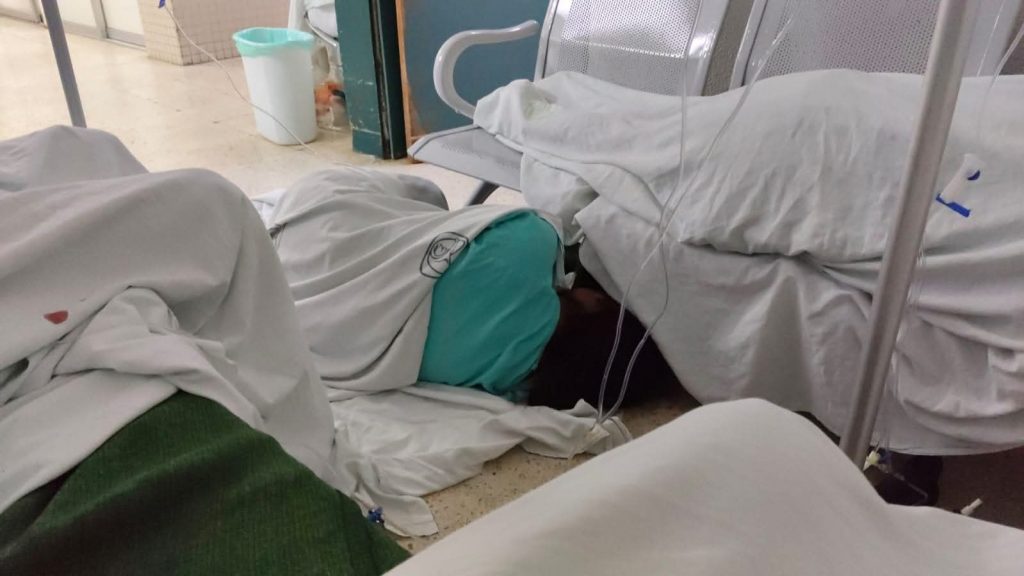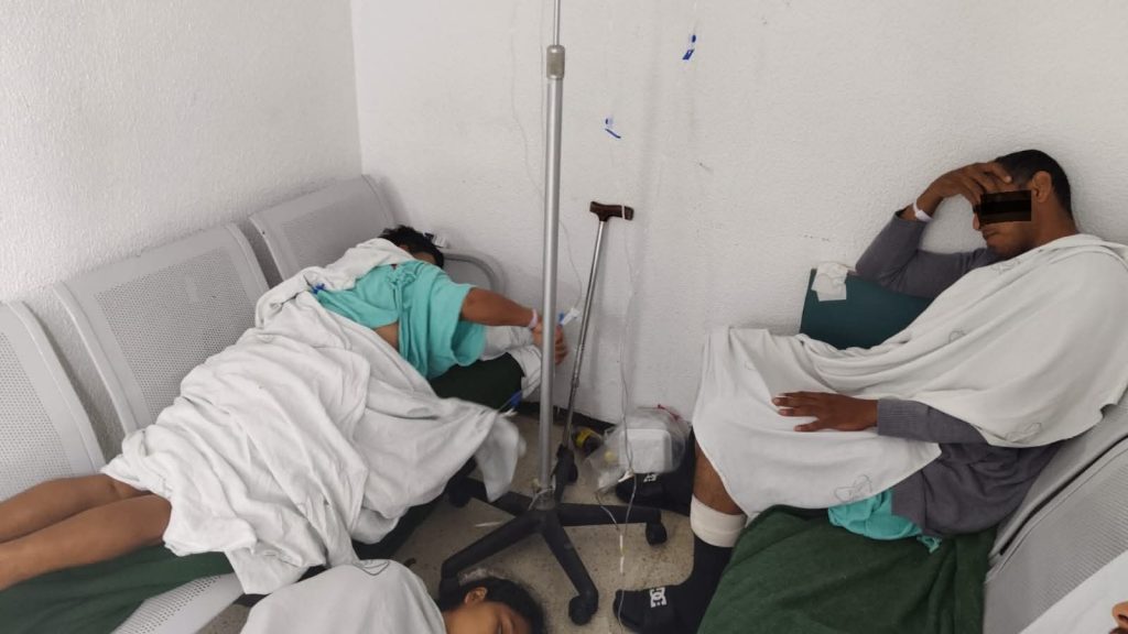 Entre los casos más graves reportados está Patricia, quien ingresó con inflamación cerebral hace cuatro días y aún no ha sido atendida; Diego, con ligamentos rotos; y Jorge, con fractura de clavícula. Ninguno ha recibido cirugía ni limpieza médica, mucho menos ropa hospitalaria.