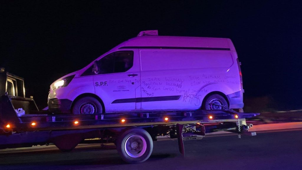 En las inmediaciones, dentro de una camioneta tipo van estacionada cerca del puente, fueron descubiertos quince cuerpos completos y uno más decapitado, todos del sexo masculino y con heridas visibles por proyectil de arma de fuego. Además, la unidad tenía mensajes escritos en su exterior y una narcomanta, que fue retirada de inmediato por las autoridades.
