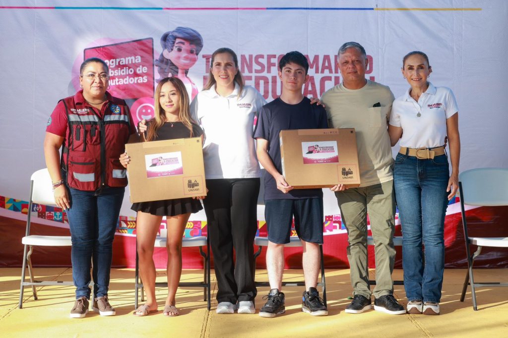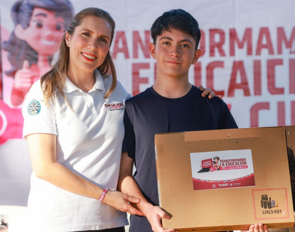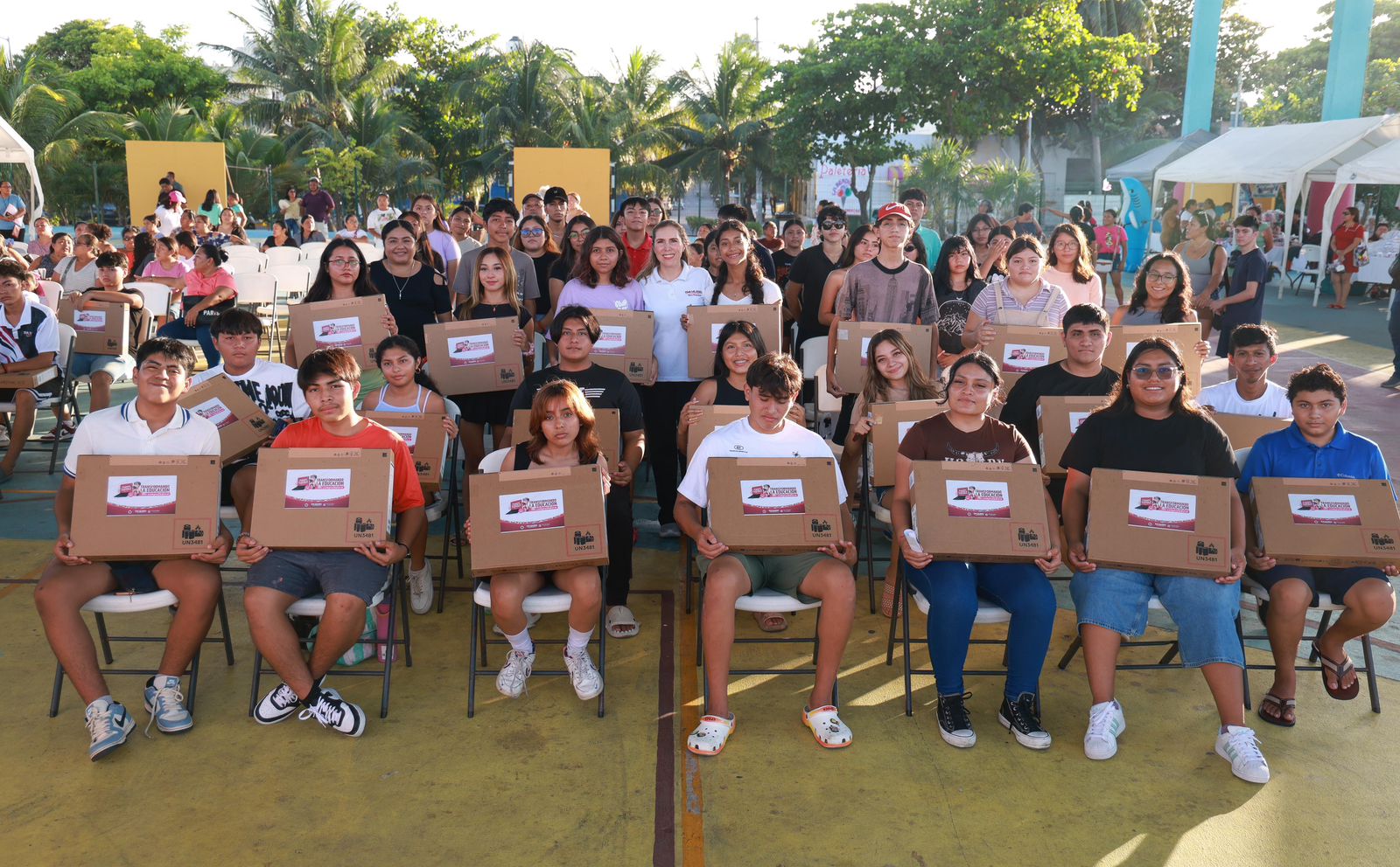 ISLA MUJERES.-Reafirmando su compromiso con la educación en Isla Mujeres, la Presidenta Municipal, Atenea Gómez Ricalde, entregó en la Zona Insular, computadoras nuevas a las y los jóvenes de bachillerato y universidad, como parte del Programa Transformando la Educación: Mi Computadora.