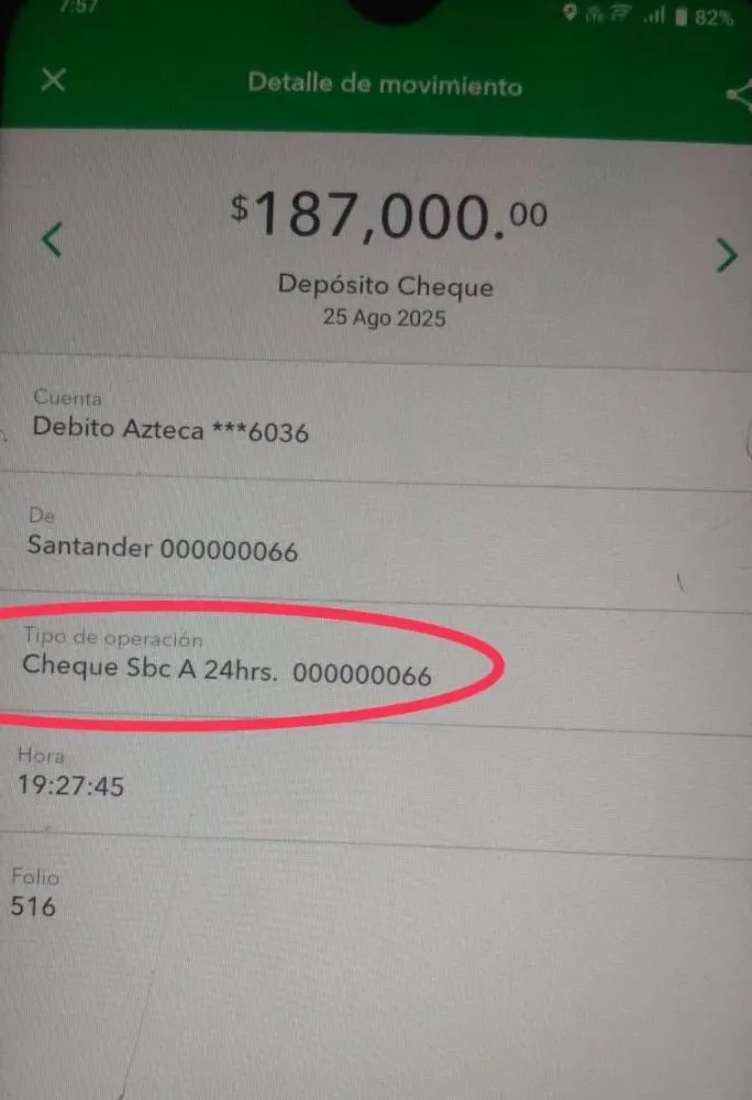 Este detalle, aparentemente técnico, resulta clave: significa que el depósito se hizo mediante cheque y está sujeto a validación, proceso que puede tardar hasta 24 horas. Si el documento carece de fondos, la operación se revierte y el vendedor queda sin dinero y, en el peor de los casos, sin el automóvil si ya lo entregó.