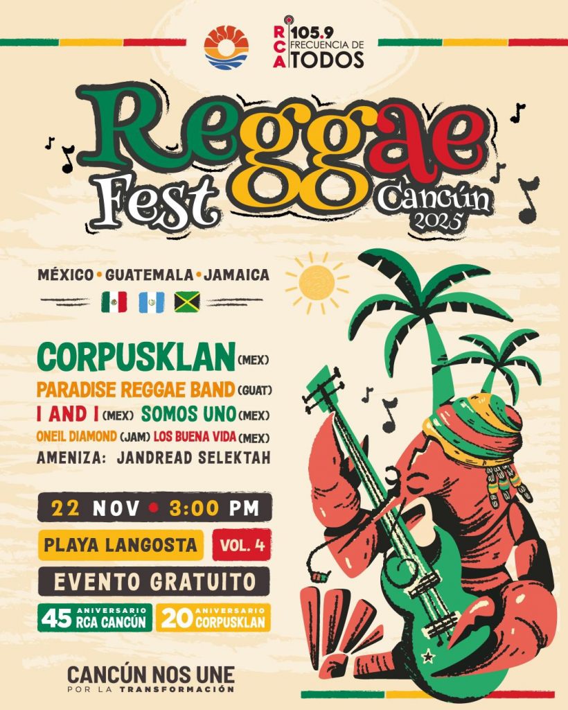 Cancún vibra con el Reggae Fest 2025 en Playa Langosta este 22 de noviembre