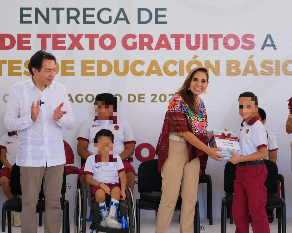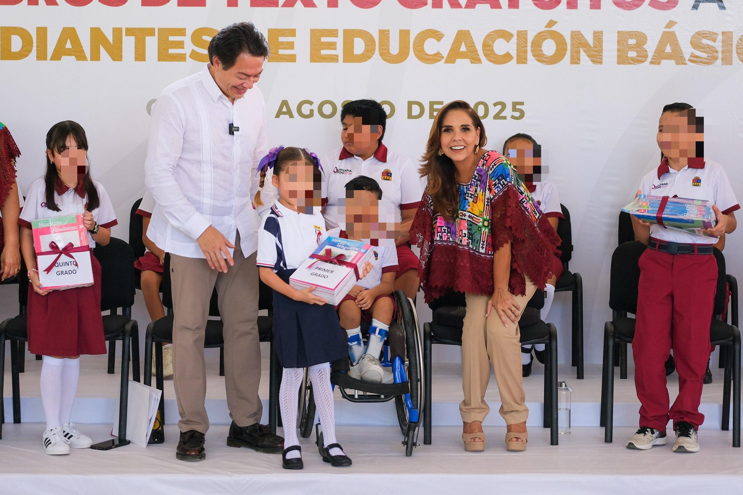Mara Lezama informó que esta entrega de libros se complementará con la entrega de mochilas, útiles y uniformes escolares a partir del 1 de septiembre, un apoyo que representa un alivio para la economía de miles de familias, “porque los recursos públicos pertenecen al pueblo y deben usarse en lo que más importa, en el bienestar de nuestras hijas e hijos”.
