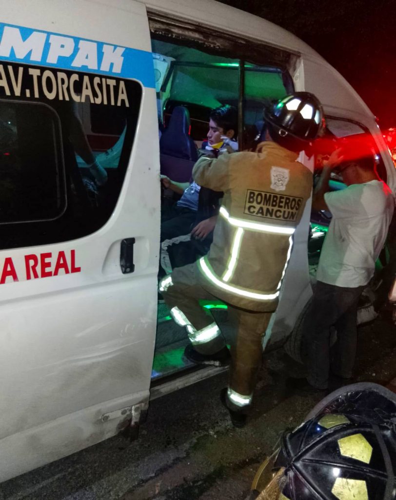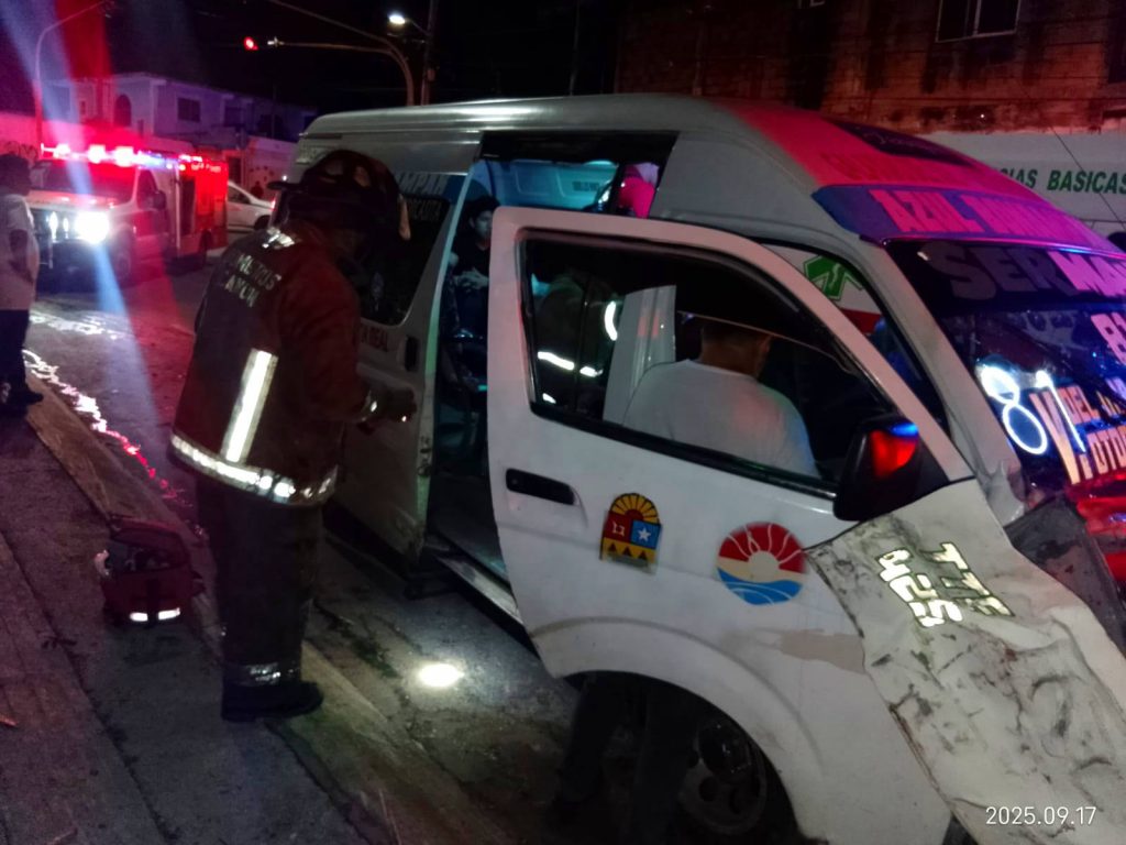 Cancún.- La noche del jueves, un aparatoso accidente se registró en la Supermanzana 72 de Cancún, cuando una combi del transporte público presuntamente impactó contra un camión de pasajeros. El choque dejó como saldo ocho personas lesionadas y desató un fuerte caos vial en la zona. Vecinos alertaron a los cuerpos de emergencia debido al estruendo y la magnitud del incidente.