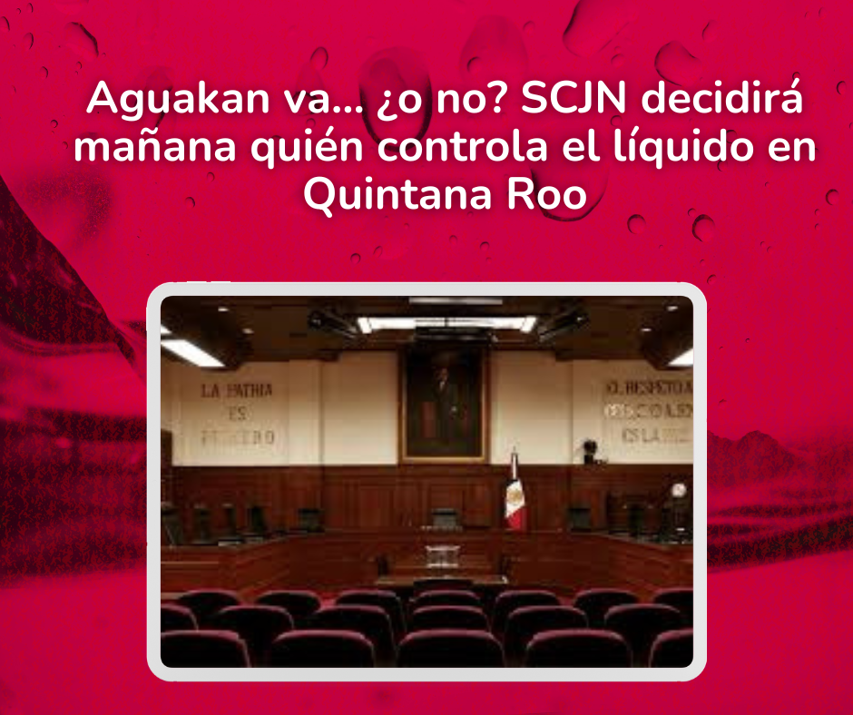 Ciudad de México, 15 de octubre de 2025.— Este miércoles 16 de octubre, el Pleno de la Suprema Corte de Justicia de la Nación (SCJN) analizará si reasume competencia en la controversia sobre el control del servicio de agua potable en Cancún, Playa del Carmen, Isla Mujeres y Puerto Morelos, un litigio promovido por Hugo Aguilar Ortiz que enfrenta al Gobierno de Quintana Roo con la empresa Aguakán.