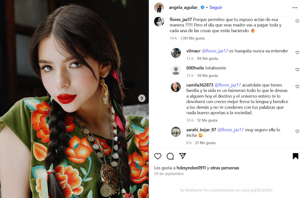 El intercambio de declaraciones desató una ola de ataques contra Ángela Aguilar en redes sociales, donde usuarios la acusan de respaldar las acciones de su esposo y de mostrar “falta de sororidad” hacia Cazzu. Ante la presión, Aguilar limitó los comentarios en sus publicaciones y decidió mantenerse en silencio.