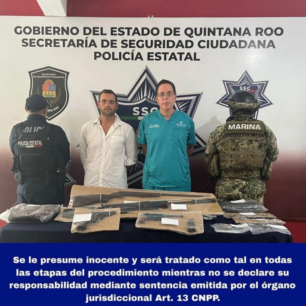 Benito Juárez, Quintana Roo. — Elementos del Grupo Orión de la Secretaría de Seguridad Ciudadana, en coordinación con la Secretaría de Marina, detuvieron a Joaquín “N” y Héctor Rafael “N”, presuntamente implicados en el delito de Violación a la Ley Federal de Armas de Fuego y Explosivos.