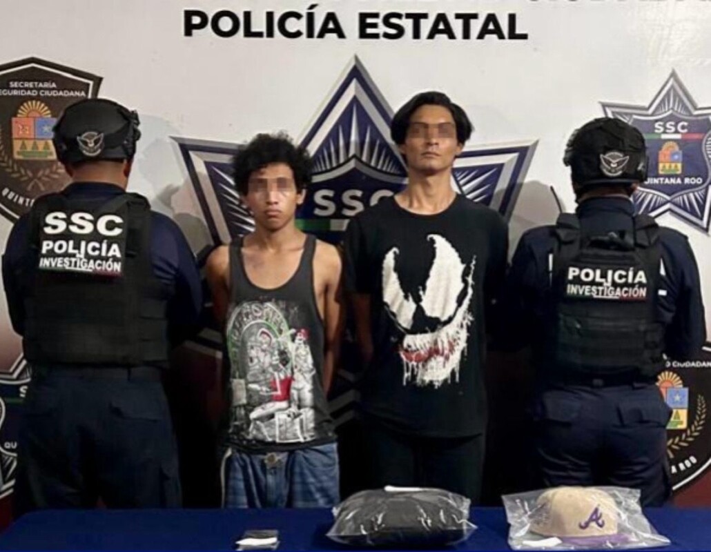 Minutos después, con apoyo de la Policía Municipal y fuerzas federales, fueron detenidos Ángel Emiliano “N” y Ali Alexander “N” en la calle Paseo de Crisantemos, pues coincidían con las características de los implicados en el robo. Entre los objetos asegurados están una gorra, una chamarra negra y un teléfono celular, los cuales serán cotejados con las imágenes de seguridad de la plaza.