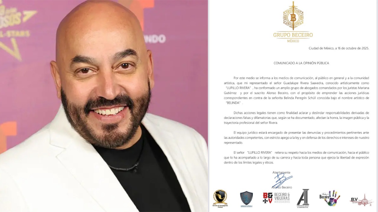 A través de un comunicado emitido el jueves 16 de octubre, el despacho Grupo Beceiro —que representa a Rivera— informó que las acciones legales buscan “aclarar y deslindar responsabilidades derivadas de declaraciones falsas y difamatorias que afectan la honra, imagen pública y trayectoria profesional del artista”.