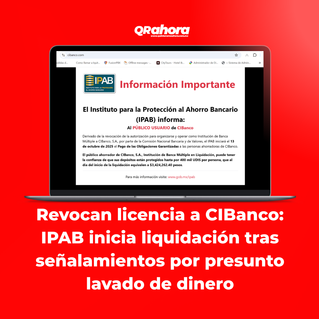 Con la salida de CIBanco del sistema bancario, el IPAB reiteró que los depósitos protegidos están garantizados conforme a la ley y que los clientes recibirán información puntual sobre el proceso de liquidación y el calendario de pagos.