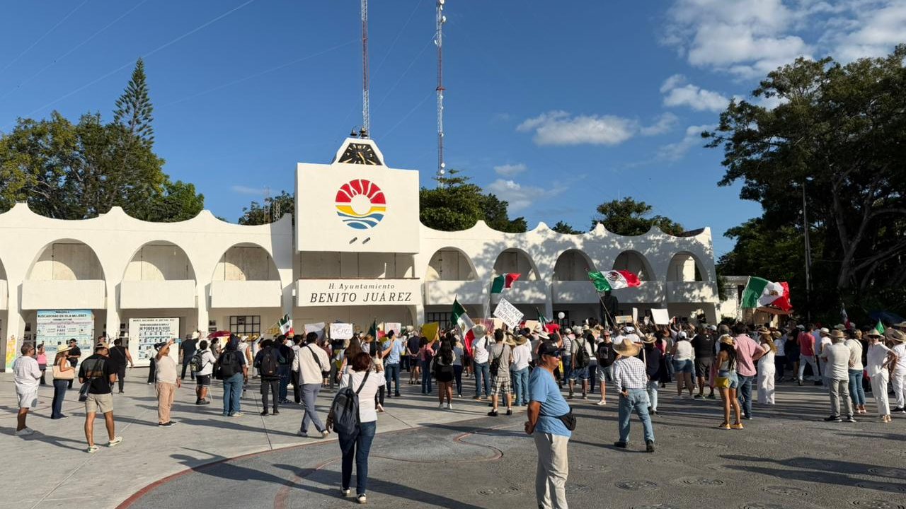 Cancún, Quintana Roo.- Unos 300 ciudadanos se reunieron la tarde de este sábado en la explanada del Palacio Municipal para sumarse a la protesta nacional convocada por el llamado “Movimiento del Sombrero”, surgido tras el homicidio del presidente municipal de Uruapan, Carlos Manzo.