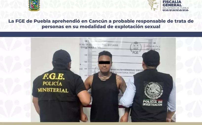 Cancún.- La Fiscalía General del Estado de Puebla (FGE), en coordinación con autoridades de Quintana Roo, logró la detención de Omar N., de 33 años, por su presunta responsabilidad en el delito de trata de personas en su modalidad de explotación sexual, en agravio de su esposa.