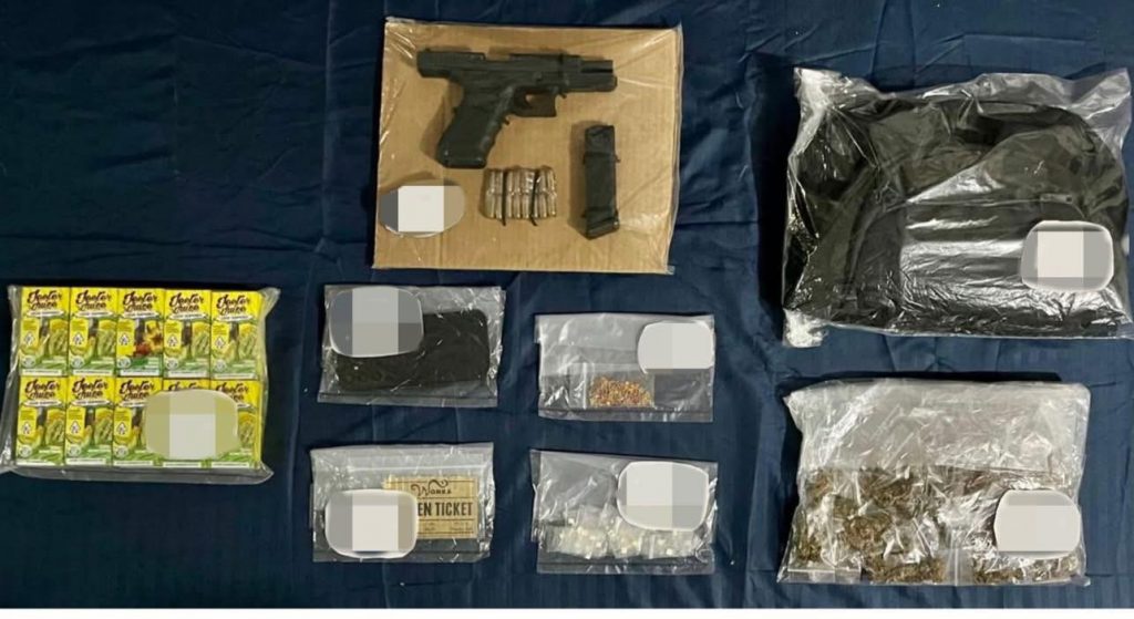 Al notar la presencia de las autoridades, uno de los sujetos huyó corriendo, mientras que el otro abordó el vehículo e intentó escapar, sin embargo, fue interceptado metros adelante. Durante la inspección, se le aseguró una mochila con 65 bolsitas tipo ziploc con hierba verde seca con características de marihuana; 10 cajas con cartuchos de extracto de cannabis; una bolsa con fragmentos sólidos de colores; otra con una hoja de 150 cuadritos dorados, similar a LSD; y 20 bolsitas con fragmentos sólidos blancos, presuntamente piedra.