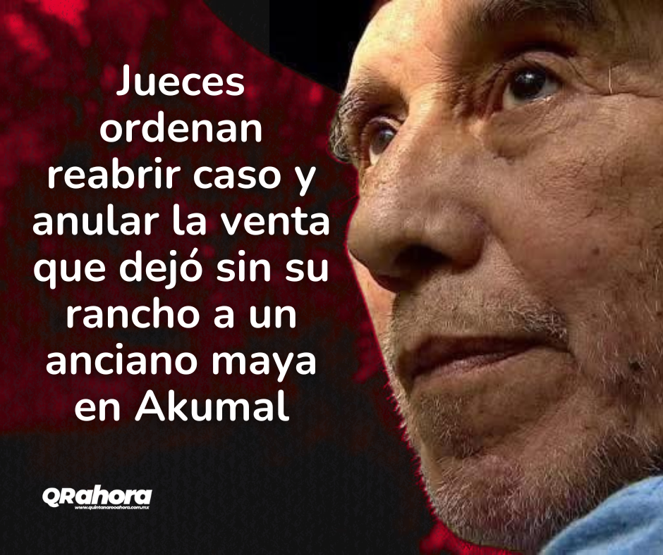 Quintana Roo.- Después de seis años de litigio, un juez federal y una jueza civil de Yucatán ordenaron reabrir la investigación penal y declarar nula la compraventa mediante la cual el anciano maya Antonio Manrique Mac, de 73 años, fue despojado de su rancho conocido como “La Caverna”, en Akumal.