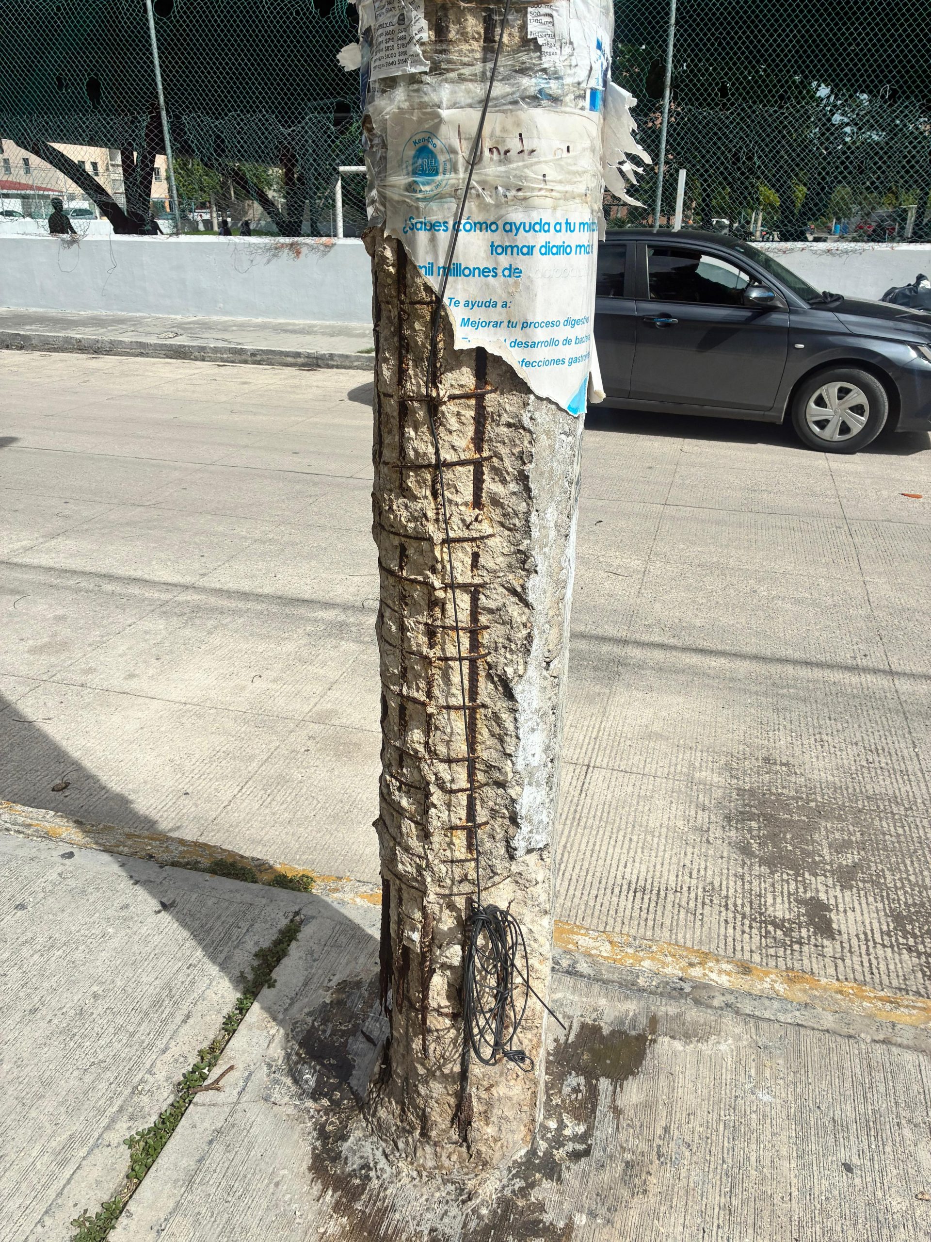 Los habitantes reportan que los postes presentan fisuras, falta de concreto y varillas expuestas, tanto en la base como en la parte superior, lo que los deja prácticamente sostenidos por el metal oxidado. Algunos aseguran que basta con una fuerte lluvia o un viento intenso para que ocurra una tragedia.