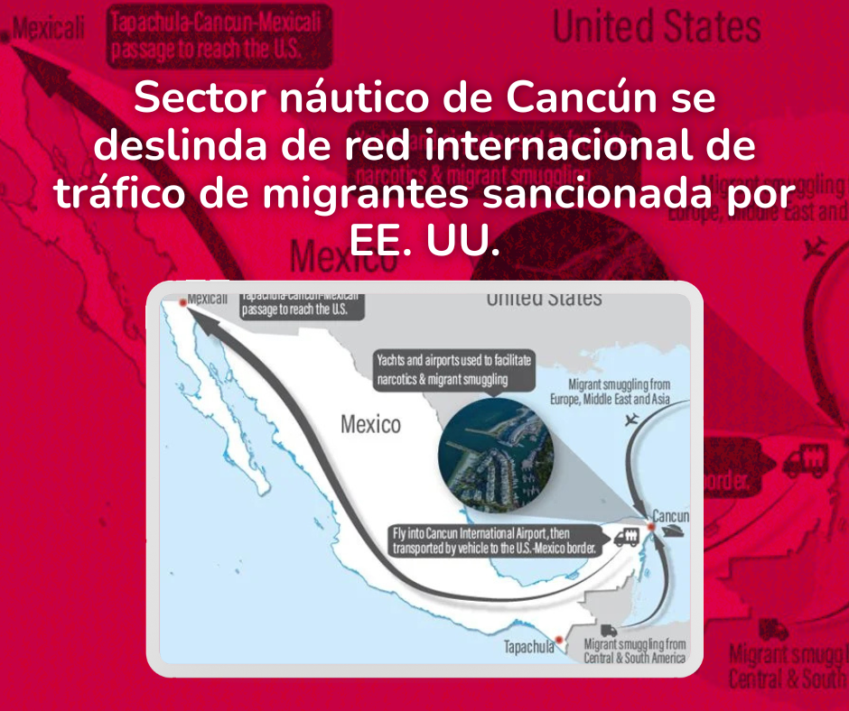 Cancún.- El sector náutico de Cancún negó tener cualquier relación con la red internacional de tráfico de migrantes con presencia en el Caribe mexicano, sancionada esta semana por el Gobierno de Estados Unidos y presuntamente encabezada por Vikrant Bhardwaj, empresario que operaba una marina en Costa Mujeres.