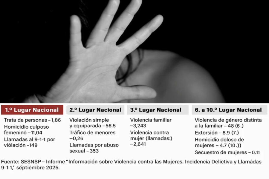 El informe correspondiente a septiembre de 2025 revela que el estado enfrenta niveles críticos de violencia física, sexual, económica y emocional, tanto en carpetas de investigación como en reportes de emergencia al 9-1-1, confirmando un patrón sostenido de agresiones en distintos ámbitos.