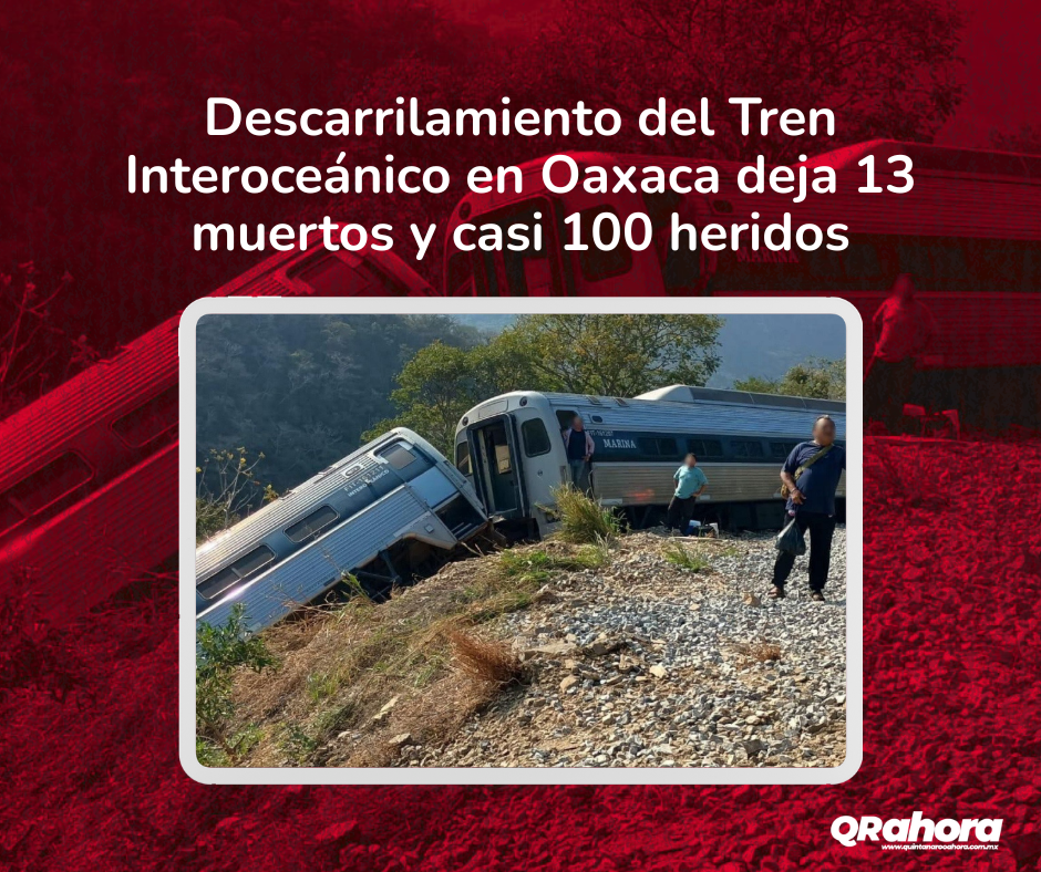 Nizanda, Oaxaca.— La Secretaría de Marina confirmó que el descarrilamiento de la máquina principal de un tren del Corredor Interoceánico del Istmo de Tehuantepec, ocurrido la noche del domingo sobre la Línea Z, dejó un saldo de 13 personas fallecidas y 98 lesionadas.