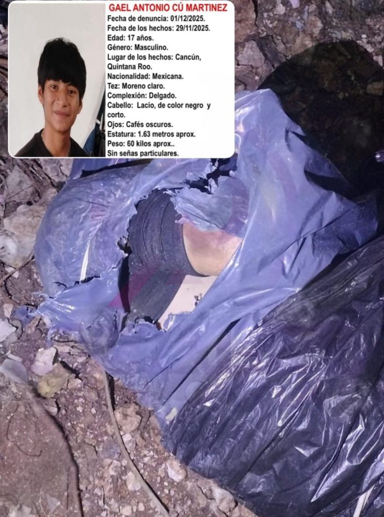 De manera preliminar, la víctima fue identificada como Gael Antonio Cú Martínez, un muchacho que apenas alcanzaba la mayoría de edad y cuya ausencia había activado una Alerta Amber. Su rastro se perdió de forma abrupta, y versiones extraoficiales señalan que habría sido privado de la libertad por sujetos vinculados a la delincuencia organizada que opera en Cancún.