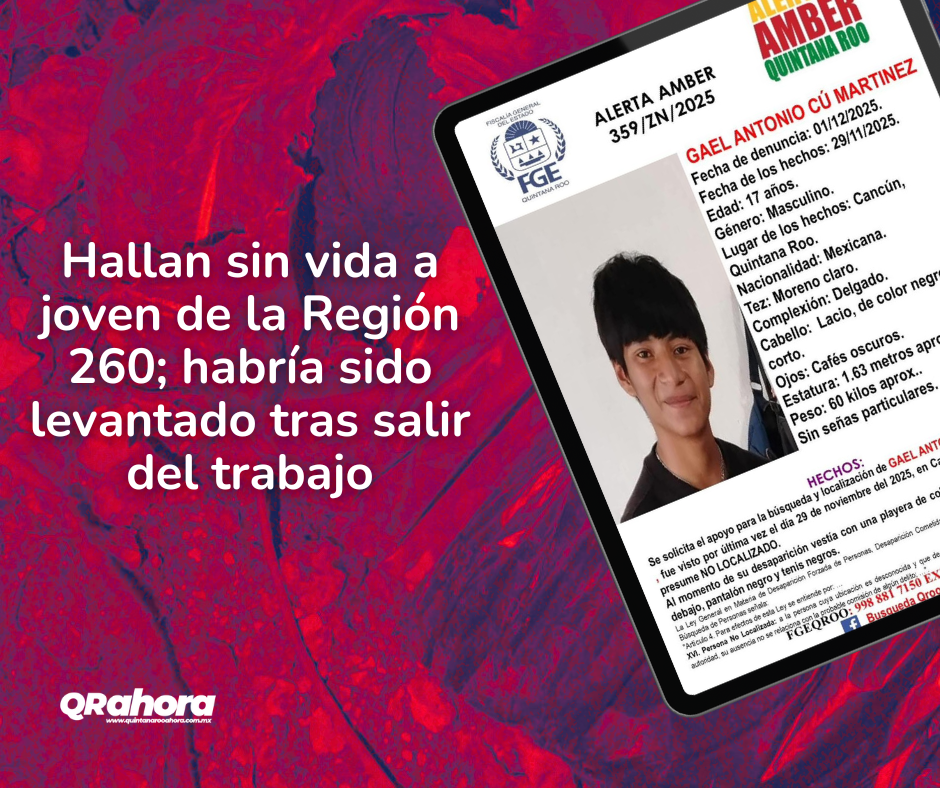 De manera preliminar, la víctima fue identificada como Gael Antonio Cú Martínez, un muchacho que apenas alcanzaba la mayoría de edad y cuya ausencia había activado una Alerta Amber. Su rastro se perdió de forma abrupta, y versiones extraoficiales señalan que habría sido privado de la libertad por sujetos vinculados a la delincuencia organizada que opera en Cancún.