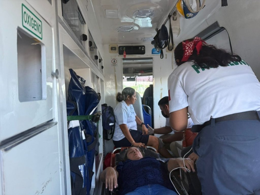 Cancún, Q. Roo.— Un total de ocho pasajeros lesionados dejó un aparatoso accidente de tránsito ocurrido en el cruce de la avenida Los Tules y la calle Chemuyil, en la Región 247, donde se vio involucrada una combi de servicio público.