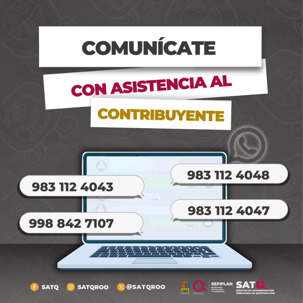 Para resolver dudas o recibir orientación, se habilitaron las líneas de WhatsApp 983 112 4043, 983 112 4048, 998 842 7107 y 983 112 4047, a disposición de los contribuyentes.