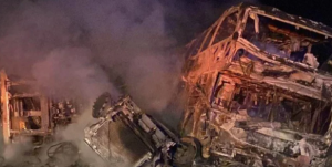 En la Autopista Mazatlán-Culiacán, un autobús de pasajeros chocó contra un tráiler volcado en...
