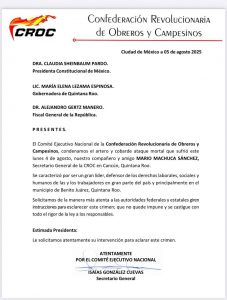 Redacción / Quintana Roo Ahora Cancún.- El asesinato de Mario Machuca Sánchez, dirigente sindical...